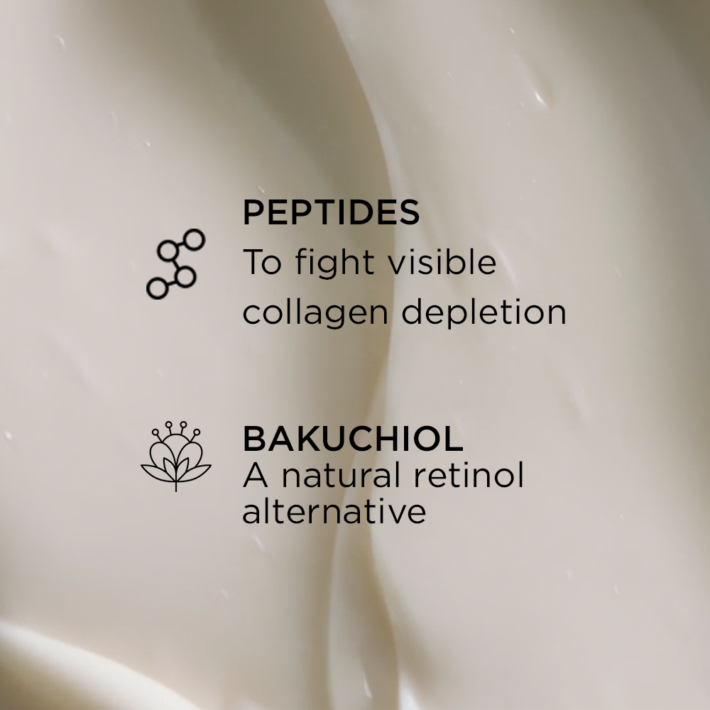 Visibly smooth, even and firm skin over time with clinically-proven, advanced peptides and plant-derived retinol, bakuchiol.