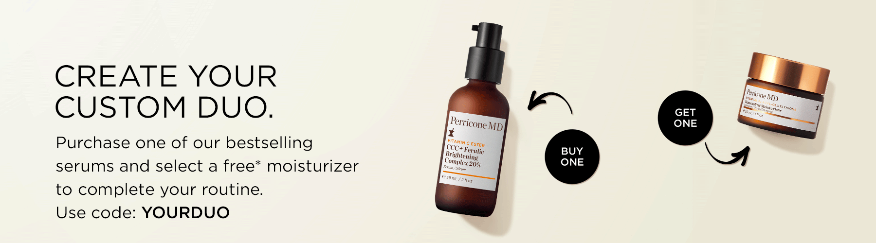 Create your own custom duo. For a limited time, buy a serum, and get a free moisturizer. Add both items to your cart, and the discount will apply. Use code: YOURDUO